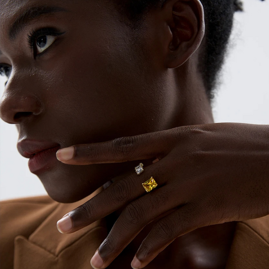 Anel Balance Mix Banhado a Ouro com Zircônias