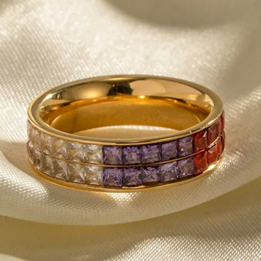 Anel Cosmos Banhado a Ouro com Zircônias Coloridas