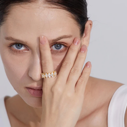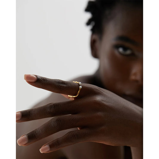Anel Allure Triple com Pérolas Simuladas Banhado a Ouro