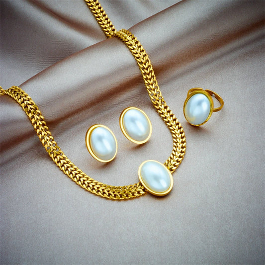 Conjunto Perlaire - Colar, Brincos e Anel Banhado a Ouro 18K