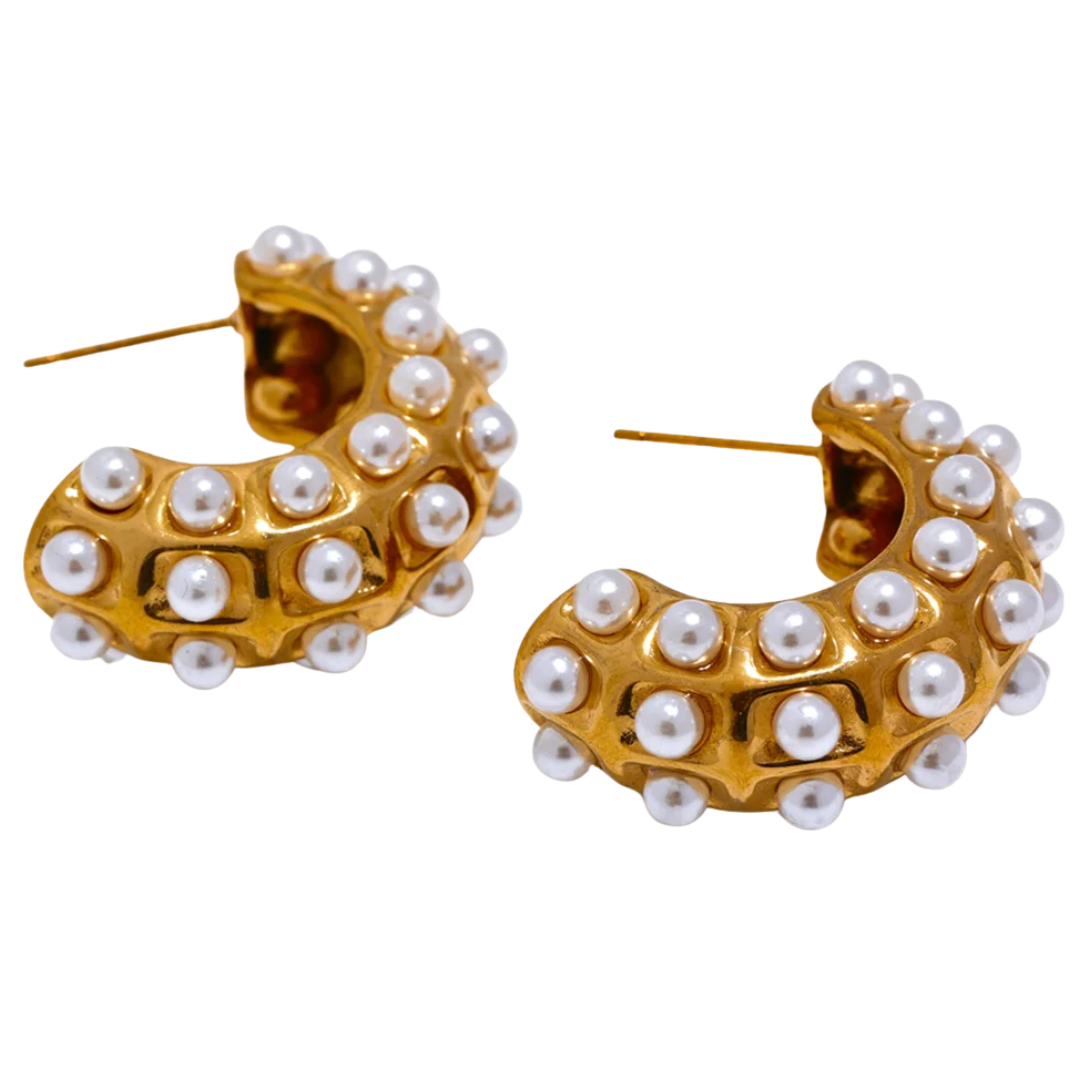 Os Brincos Formato C em ouro são verdadeiras joias de elegância e sofisticação. Este design gracioso em formato C, delicadamente cravejado de pérolas simuladas, oferece um toque de luxo e beleza atemporal. Um acessório lindo que captura a essência da feminilidade e adiciona um brilho encantador a qualquer ocasião.