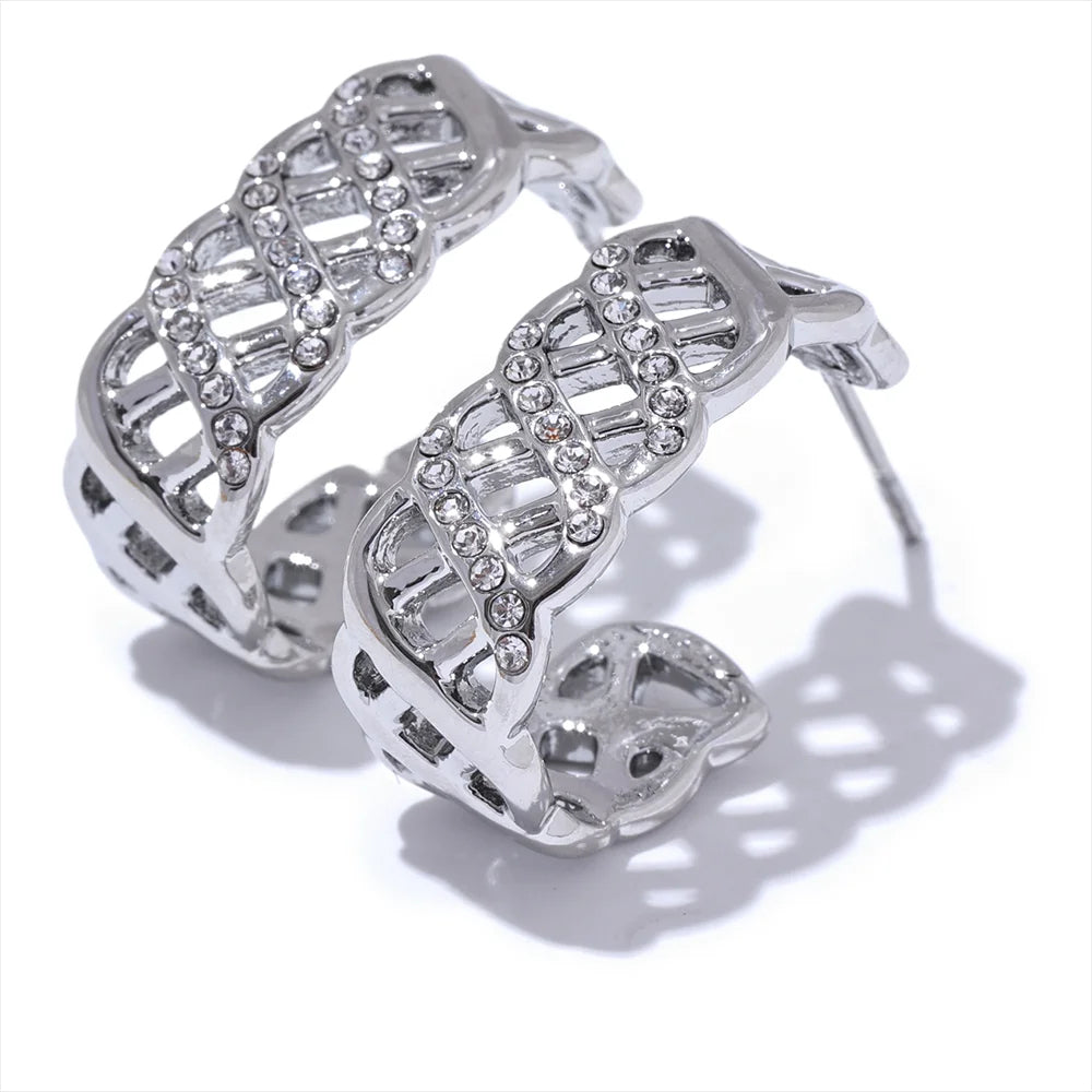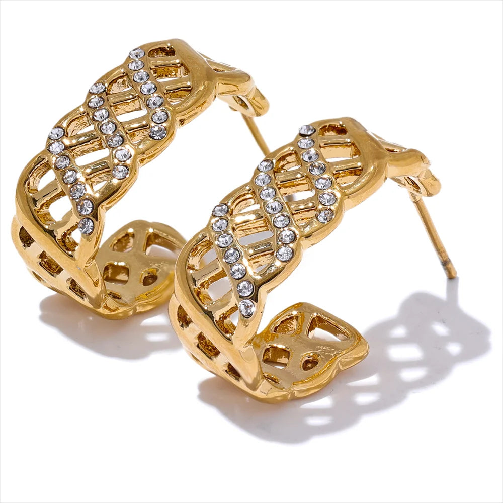 Os Brincos Vienna trazem um design de argola aberta enriquecido por zircônias cúbicas reluzentes, criando um equilíbrio perfeito entre sofisticação e brilho moderno. Uma peça versátil e refinada para elevar qualquer look com elegância.