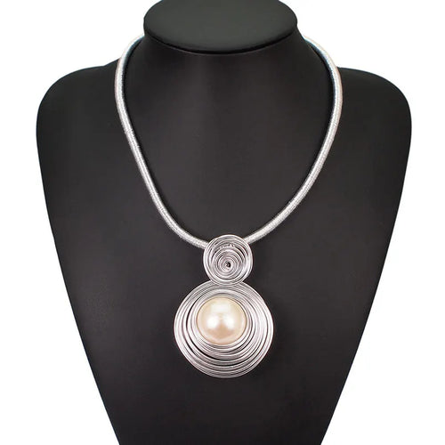 Colar Solara com design artesanal, pérola simulada em destaque e corrente dourada de estilo contemporâneo. O pingente maxi adiciona presença e elegância, compondo um visual harmonioso e bem definido.