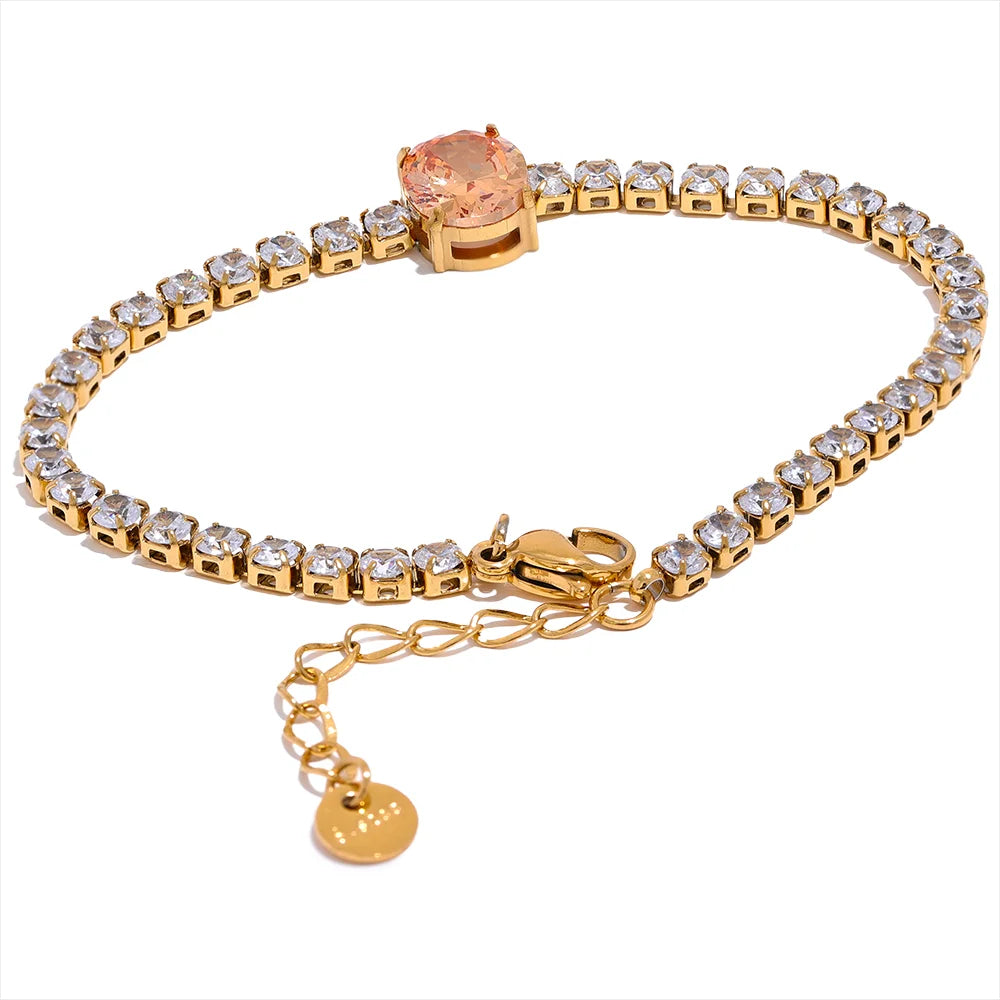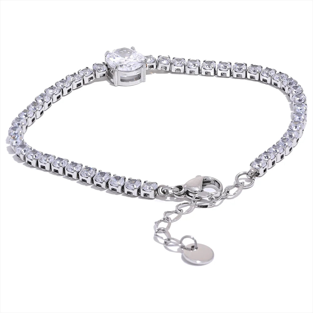 A pulseira Azurielle, confeccionada em aço inoxidável impermeável, apresenta uma corrente elegante adornada com zircônias cúbicas. Esta jóia de alta qualidade exala luxo e sofisticação, destacando-se no mundo da moda.